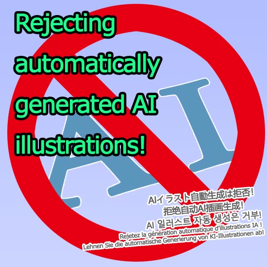 他方で同じ構図・輪郭で色が違うといった類似イラストがございましたらそれは明らかに当方の作品ではございません。おそらく当イラストを下地にしてのトレーズ再作成もしくは人工知能AIによる模造作成でありそれは著作権法律に抵触しているものでありますので、取り違えのないようご注意願います。勿論著作権違反者へは静観せず対処を行っていきます。