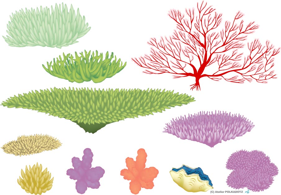 ミドリイシに代表される、枝が幾股にも分岐しているサンゴを複数イラスト作成、提供を開始しています。